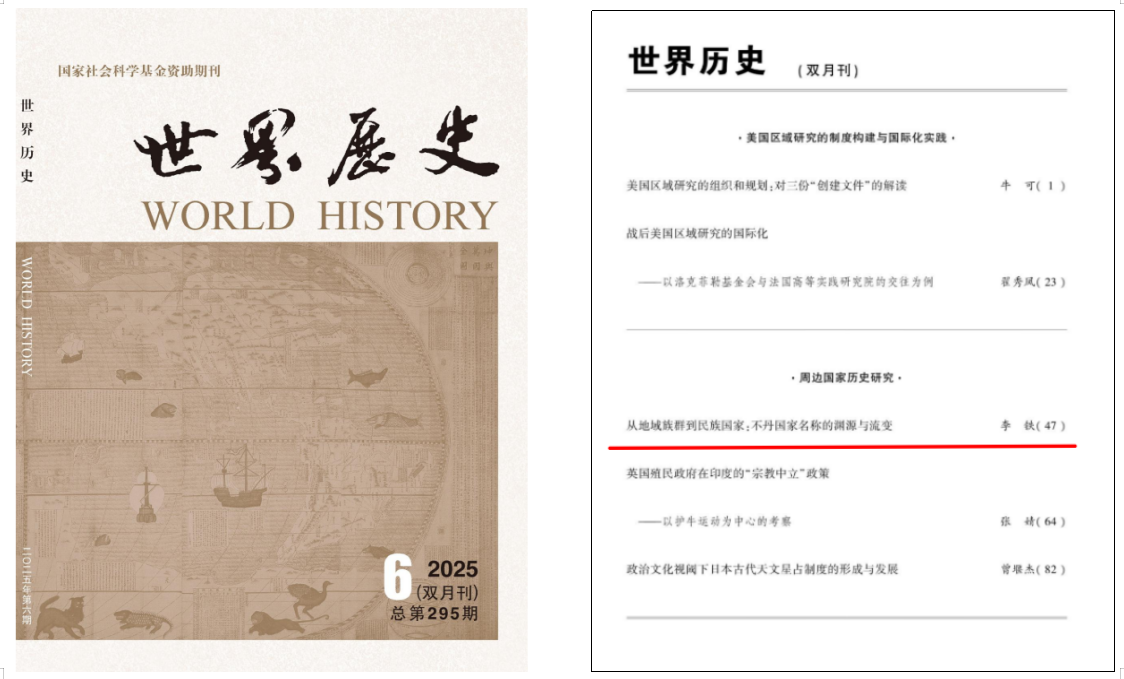 bet356唯一官网体育李铁教授在世界历史领域顶刊《世界历史》2025年第6期上发表论文《从地域族群到民族国家:不丹国家名称的渊源与流变》。该论文系李铁教授主持的国家社会科学基金一般项目“当代不丹国家治理与现代化道路研究”的阶段性研究成果。此次发表标志着bat365官网登录入口在跨学科的区域国别研究领域取得了重要突破,彰显了学院服务国家战略需求、深耕特定区域研究的学术实力与发展潜力。文章以不丹国家名称为研究对象,探讨其作为凝聚性符号...