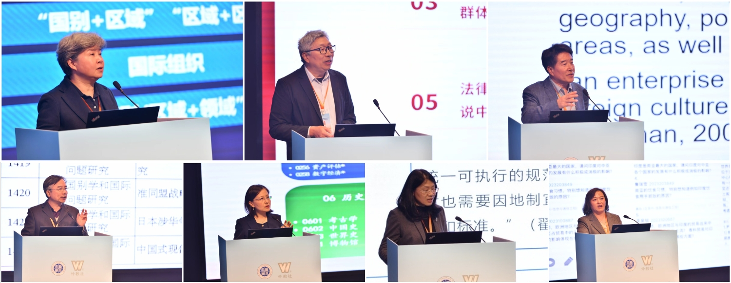 In the subsequent keynote forum, seven invited experts delivered keynote speeches in succession. Professor Zhao Ronghui from Shanghai International Studies University, in her presentation  “Country and Region Studies with Language as the Pathway”, elaborated on the central role of language in the global knowledge production system. She pointed out that foreign language disciplines should avoid the misconception that knowing a foreign language equates to being able to conduct research and should actively explore practical pathways for country and region studies with language as the core approach. Professor Cai Shengqin from Zhongnan University of Economics and Law shared innovative approaches to interdisciplinary research between literature and legal texts. Professor Li Jianbo, Executive Deputy Editor-in-Chief of The Journal of Zhejiang International Studies University, discussed the orientation of country and region studies within foreign language disciplines. Professor Mao Haoran from China University of Petroleum (East China) proposed a paradigm shift in country and region studies from grand narratives to precise deconstruction. Professor Zhang Weilei from Shanghai University of International Business and Economics, Professor Liu Wenxia from North China University of Water Resources and Electric Power, and Professor Li Qian from Northwestern Polytechnical University shared their latest findings on foreign language talent cultivation, disciplinary differentiation, and the construction of a “macro-country and region studies” framework in engineering universities, respectively. The experts’ reports spanned multiple dimensions, from linguistics and literature to policy research and talent cultivation, fully demonstrating the broad prospects of foreign language disciplines in the field of country and region studies.