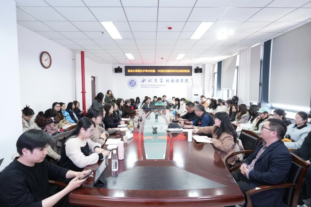 On the afternoon of November 27, 2025, Professor Huang Dayuan from Xi’an International Studies University was invited to deliver the 479th lecture of the “Hou Wailu Academic Lecture” series at Northwest University. He presented a special lecture titled “On the Oasis Perspective in Central Asian Country and Region Studies” for faculty and students. The lecture was hosted by Mei Zilin, Head of the Russian Department at the Northwest University School of Foreign Languages. Numerous faculty and students from the university attended.