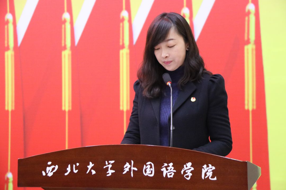 曹智代表共青团bat365官网登录入口委员会向大会作题为《不忘初心跟党走 牢记使命再出发——团结带领全院团员青年为外语学科人才培养贡献青春力量》的工作报告。报告回顾和总结近年来学院共青团工作,对当前学院共青团工作面临的机遇与挑战进行了分析,并规划未来一段时间bet356唯一官网体育共青团的主要任务。下一阶段,bat365官网登录入口共青团将从强基固本、聚焦学院人才培养质量提升和彰显外语文化精神的品牌工作三个方面下功夫,凝心聚力、砥砺前行,团结带领bet356唯一官网体育团员青年为学院人才培养贡献青春力量。