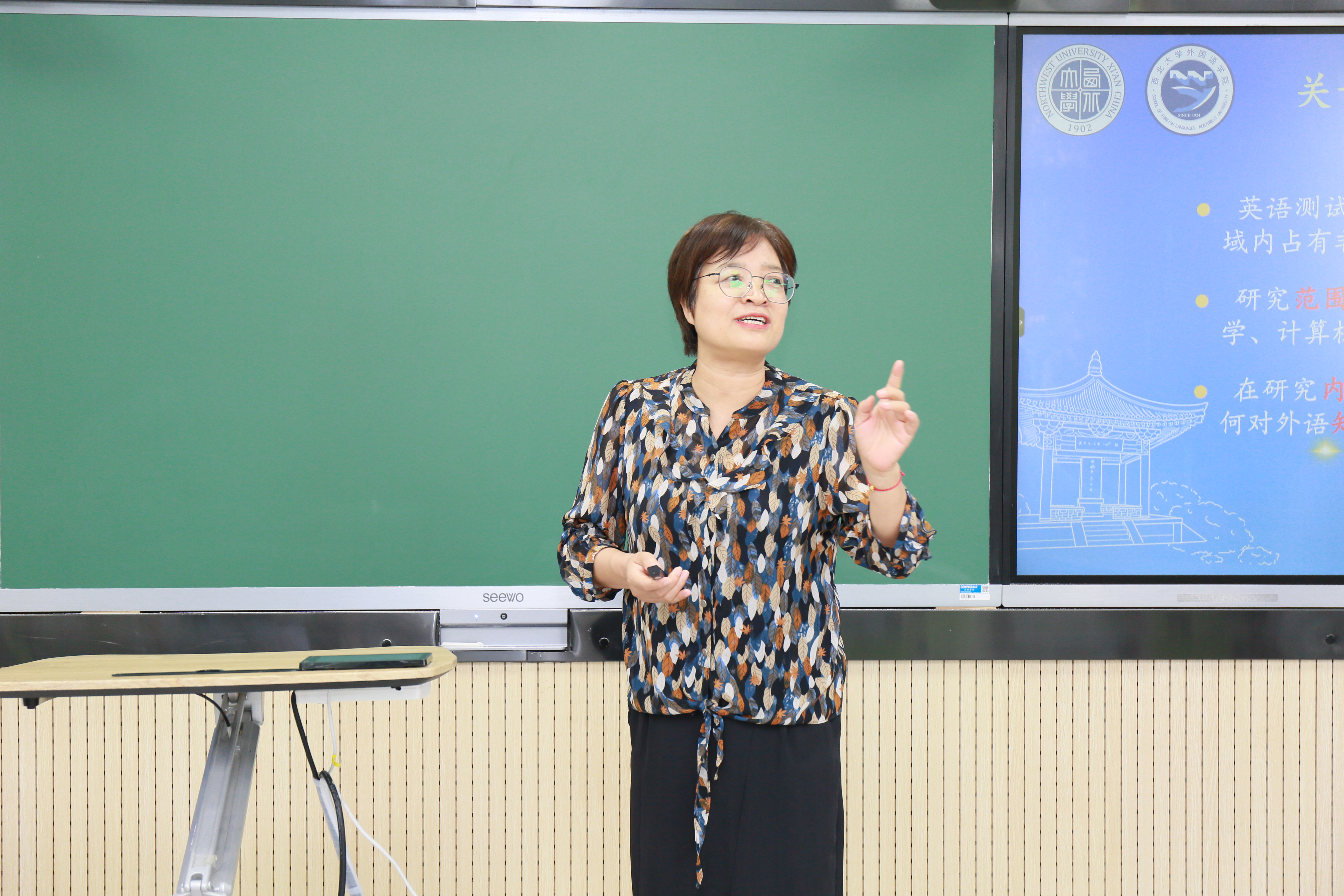 高淑玲教授的讲座题目为“语言测试学探秘”,聚焦语言测试、语言测试研究现状、语言测试研究焦点、研究团队聚焦四大版块。具体内容包括:语言测试的基本议题、语言测试学的概念和内涵、语言测试理论的三个发展时期、近10年国外语言测试的研究焦点、语言测试的用途、语言测试的必要性、国外语言测试的主要发展趋势、中国的语言测试、语言测试的作用、语言测试的学科特点、语言测试的研究范畴、语言测试的发展阶段、中国40年来的语言测试发展历程概述、中国语言测试的发展方向、语言测试的研究范式等。她总结团队多年的研究经验,提出学术繁荣需要学者的通力合作和互相批评、研究人员应该在研究过程中多听意见、研究和教学是互相依存的关系。