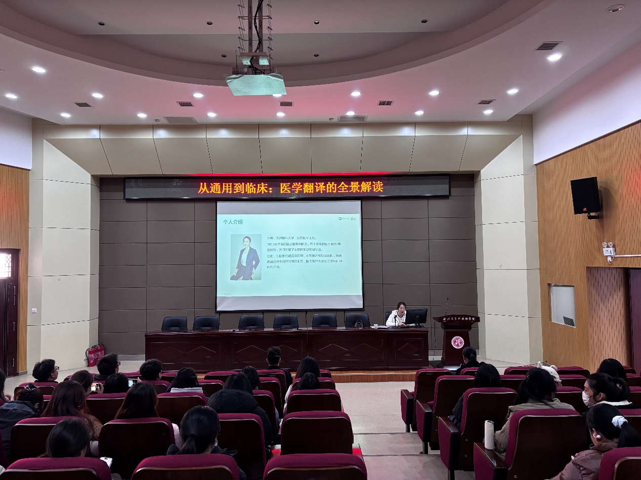 2025年11月24日14点,bat365官网登录入口“翻译行业前沿讲座系列(十四)”在长安校区第二课堂成功举办。本次讲座以“从通用到临床:医学翻译的全景解读”为主题,由西安雅信诚医学信息科技有限公司高级翻译经理李娜主讲,bet356唯一官网体育MTI中心主任何花老师主持,2025级全体翻译专业硕士研究生参加。