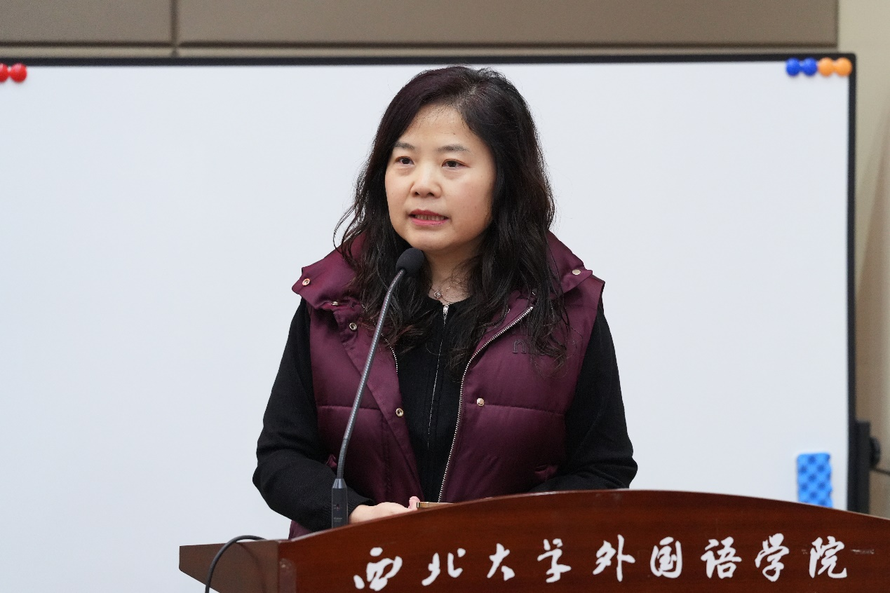 2024年11月13日下午,西安工程大学二级教授、博士生导师、图书馆馆长、中国翻译协会专家会员、中国英汉语比较研究会常务理事、陕西省翻译协会副会长胡伟华教授做客bat365官网登录入口“名家讲座”,为师生作了题为“跨文化翻译政治策略的实现路径及其翻译认知心理学考察”的讲座。讲座由bat365官网登录入口副院长苏蕊主持。校内近一百四十名师生聆听了讲座。