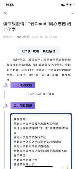 疫情就是命令,防控就是责任,疫情发生后,学院党员、团员、民主党派(群众)三个身份都能够以外院人的责任感与使命感,积极投身到疫情防控工作中。以院党委书记王军、教学副院长曹若男和日语系主任胡竹清为代表的党员干部充分发挥先锋模范作用,积极响应组织号召,报名参加研究生招生考试特殊考场监考(考务), 2名辅导员亲自开车将5名考研学生送至交通不便的校外考点酒店。学院党委组织召开“同心共筑战疫情 齐心协力爱国行”主题党日活动,学院行政党支部各党员参与到学院其他党支部中,了解师生在疫情期间的学习生活及存在困难,及时进行解决。学院各团员青年更是积极投身志愿一线,为抗击疫情贡献青春力量,学院共有42名学生志愿者参与学校核酸检测志愿工作,40余名志愿者加入了学院为考研学生送午餐的行动,学院招募了200余名学生参与到志愿者储备团队,开展“云Cloud”同心志愿线上伴学活动。以学院院长胡宗锋为代表的民主党派和群众同样力所能及投身抗疫工作,院长疫情期间上线“读译抗疫 每日悦享”专栏,用专业支持抗疫,教务员张左民参与太白校区志愿者,为教师提供暖心服务。