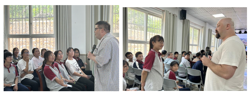 随后,外籍教师Robin Gilbank和Eli Smith分别向学生们介绍了自己的家乡,包括英国和美国的风土人情、文化传统和名胜古迹等。学生们对这些新奇的信息表现出了浓厚的兴趣,并纷纷提问,与外教进行了互动交流。