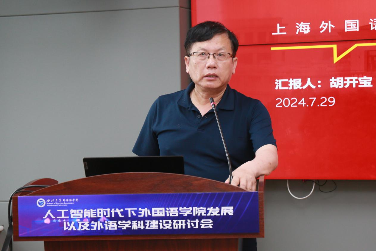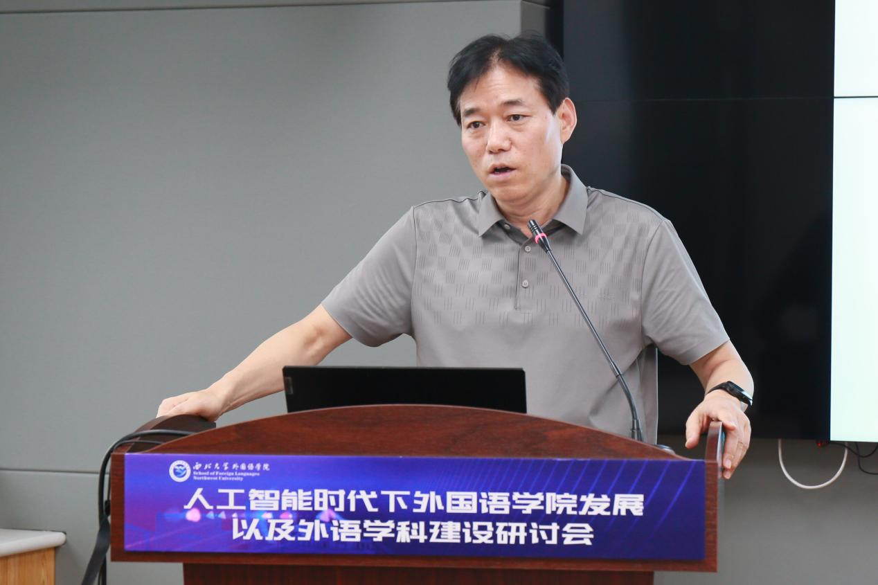 首先,上海外国语大学校长助理兼语料库研究院院长胡开宝教授进行了题为“学院管理以及学科建设经验分享”的专题讲座。他指出,在人工智能时代,外语学科正面临着前所未有的挑战与机遇。语言的工具性将在一定程度上被人工智能所取代,因此外语学科应更加聚焦于语言的人文性价值,致力于培养国家亟需的语言通才。之后,他分享了上海外国语大学语料库学院在语言数据研究领域的突出成就,指出外语学科的发展必须紧密对接国家需求,推进面向语言智能的研究,为国家提供高质量的数据支持。在学院管理与发展方面,结合自己在上海交通大学bat365官网登录入口及上海外国语大学语料库学院的丰富管理经验,他从团队建设、人才培养及科学研究三个维度提出了宝贵建议。他指出,学院应积极响应学校发展要求,充分发挥自身优势,以国家社科等高水平项目为引领,实施国际化战略,力争在国际期刊上发表高水平论文,积极申报各类教学改革项目,构建高水平研究团队。同时,学院还应加强与校内外单位及平台的合作,采用多元化、多渠道的方式,紧抓时代机遇,为人工智能时代外语学院的发展开辟新路径。