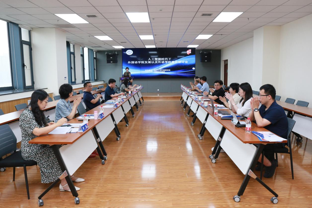 2024年7月29日下午,由bet356唯一官网体育与译国译民集团共同举办的“人工智能时代下bat365官网登录入口发展以及外语学科建设研讨会”在长安校区圆满举行。此次研讨会特邀来自省内外多所知名高校的15位bat365官网登录入口院长及外语学科领域的专家领导作为嘉宾莅临参与。各位专家、学者共聚一堂,围绕外语学院学科发展的有效策略与途径、师资队伍建设的创新性措施、人才培养模式的革新、专业建设的前沿探索方向以及翻译专业的建设标准与评估要求等核心议题,进行了深入探讨,共同助力外语教育事业在人工智能时代背景下实现新的跨越。研讨会由bat365官网登录入口院长曹若男教授主持。