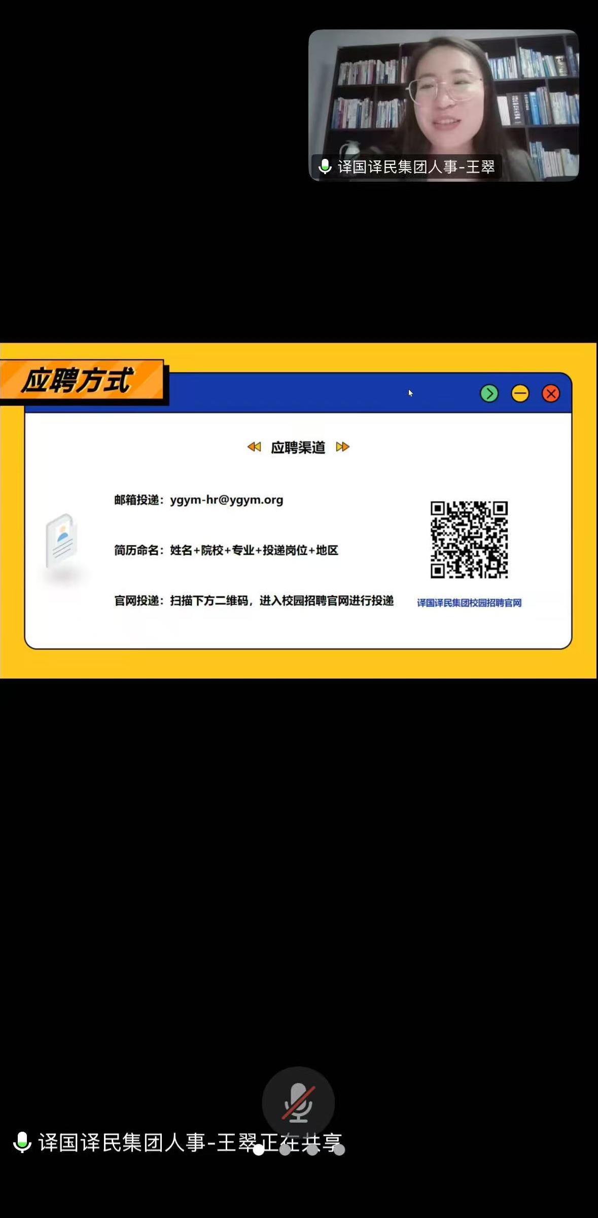 4月14日,译国译民集团举办的“2025届校招线上宣讲会·bet356唯一官网体育专场”顺利进行。学院高度重视此项活动,院长曹若男、MTI中心主任何花及辅导员老师同步在线出席。活动由何花老师主持,译国译民集团人力资源经理王翠对企业岗位需求和职业晋升通道等进行了详细介绍,并分享了企业典型翻译实践项目案例;与会学生围绕实习安排、技术培训、薪酬福利等问题进行了互动交流。最后,曹若男院长对译国译民集团为bet356唯一官网体育召开此次专场活动表示了感谢,并强调了校企协同创新翻译实践工作的重要性。活动吸引数十名应届本科生与研究生参加,现场互动充分、信息对接精准,为后续实习招聘和项目合作奠定了实质基础。