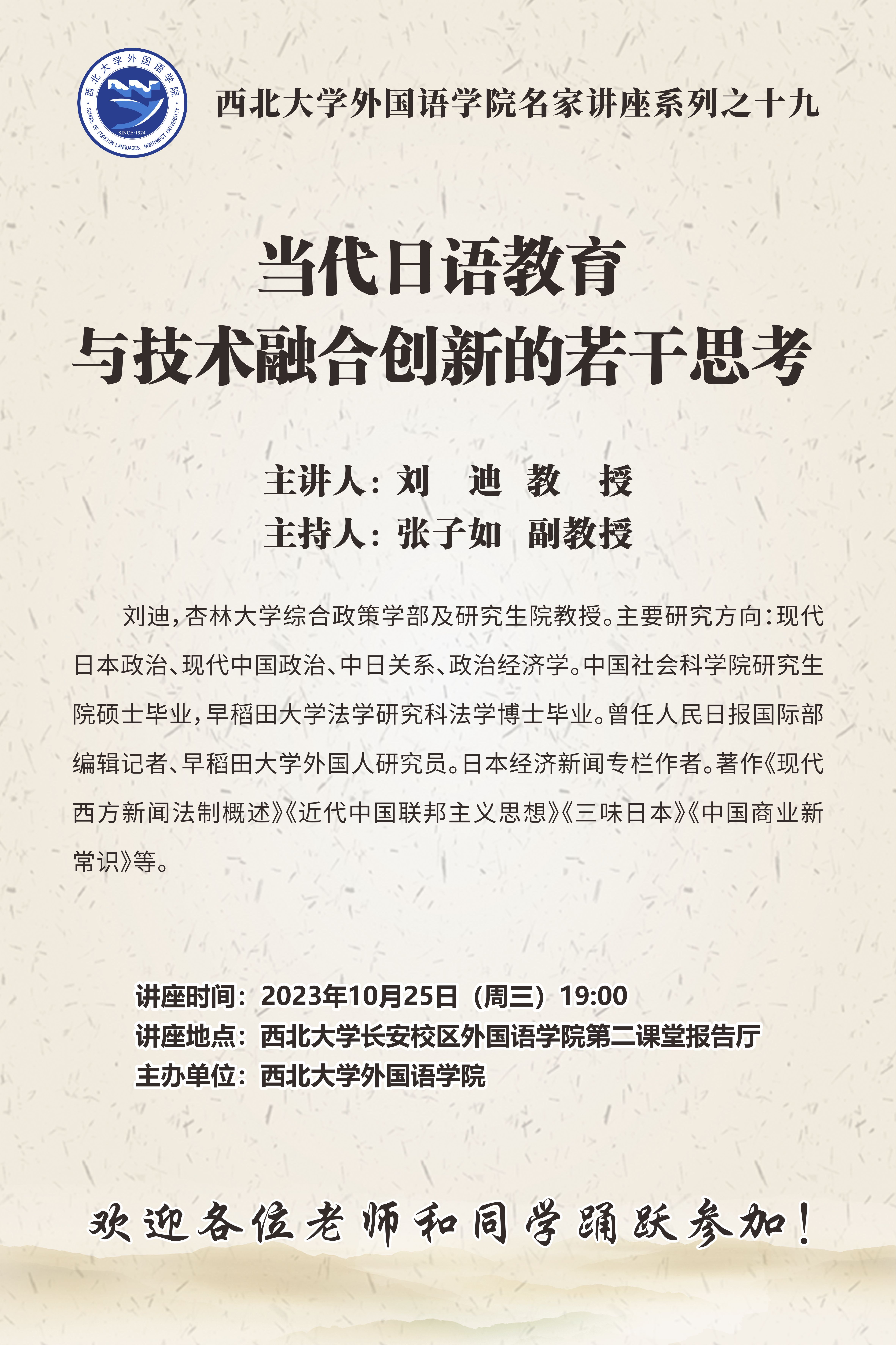bat365官网登录入口名家讲座系列之十九——当代日语教育与技术融合创新的若干思考